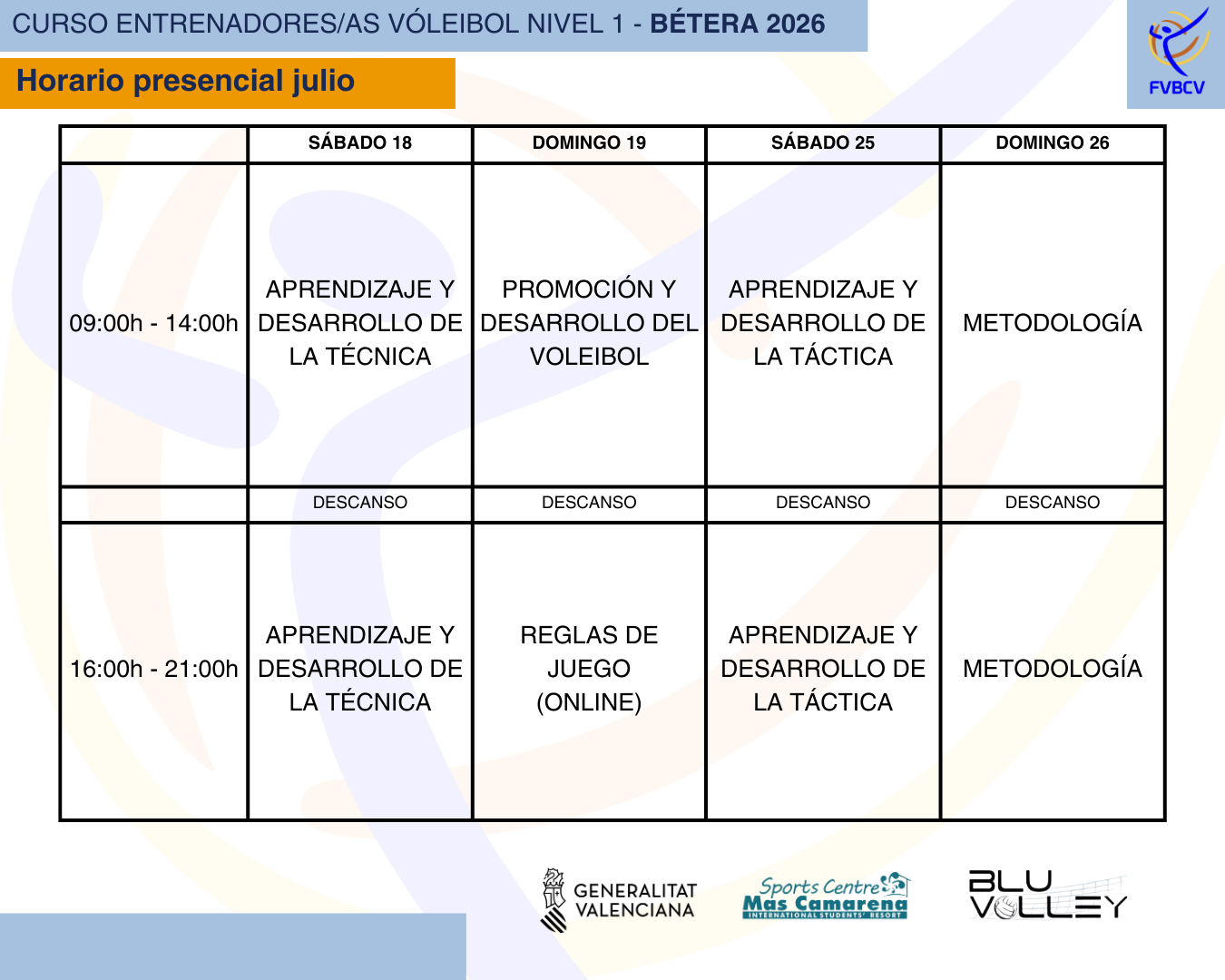 CURSOS ENTRENADORES/AS VOLEIBOL NIVEL 1